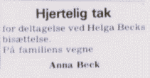 Inge er også efterkommer af skolelærer Peter Nikolaj Beck 1831-1897, men hans 1. ægteskab med Anne Marie Hansdatter Knudsen 1836-1869