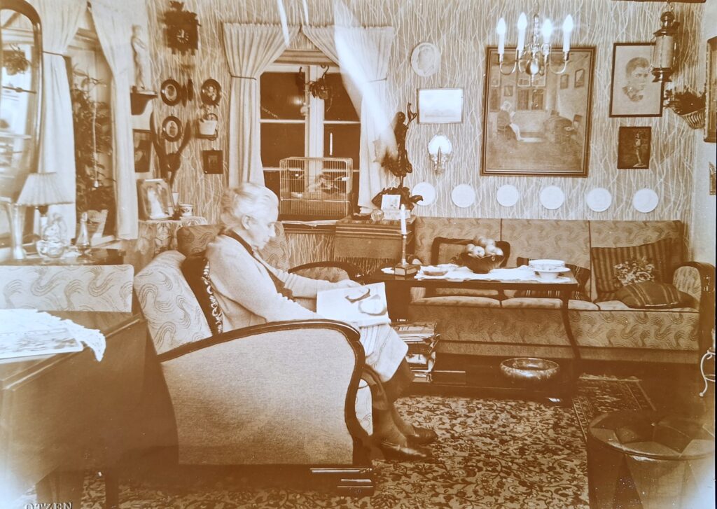 I Sankt Hansgade var der en gaslygte uden for på gaden. Den lyste stuen op om aftenen. Ellers havde de kun petroleumslamper de første år.