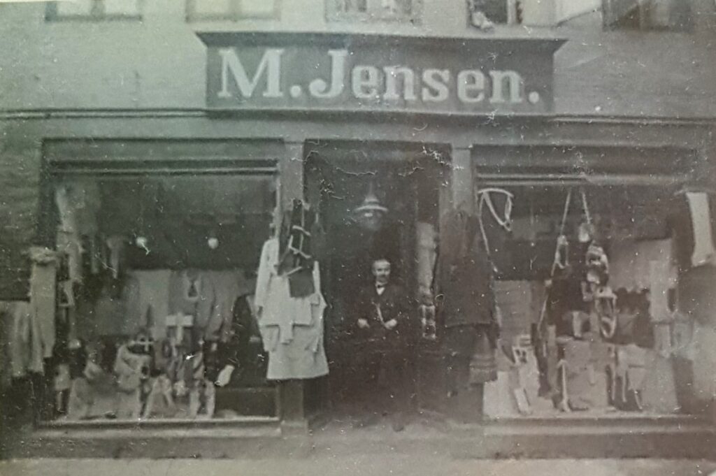 Mads Jensen klarede sig godt. Han fik en lille butik, men det var hans kone, Inger Marie, som skulle passe den, mens han selv drog rundt. De måtte kun sælge hjemmelavede ting. Det var trikotage. Det var der kontrol med. Senere fik han en større manufakturhandel, hvor de solgte alt muligt. Der var mangel på mange ting, så de solgte fx sytråd, som blev viklet om små stykker pap, så der var til alle kunder.