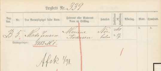 Efter Mads Sørensens død, fik Mariane fattigforsørgelse. Christen Jensen Møller kom “lige forbi”, og deraf kom Mads Jensen til.