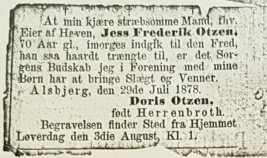 15. juli 1876 Godtborg Johan Otzen fik skøde på ”Haven”. Det fremgår af et dokument fra Landsarkivet for Nørrejylland. Matr. nr. 7a Flegum by, Torslev sogn.