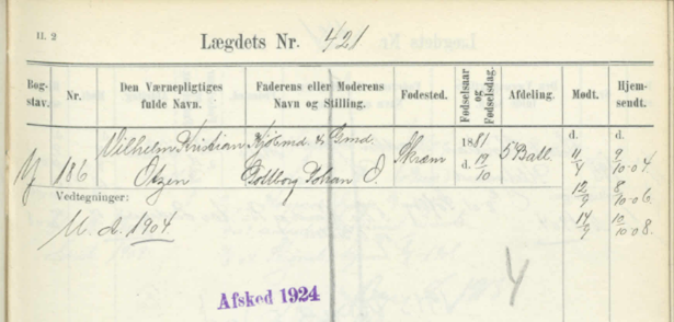Vilhelm blev indkaldt som soldat tre gange: I Lægdsrulle står der 5. Battalion.