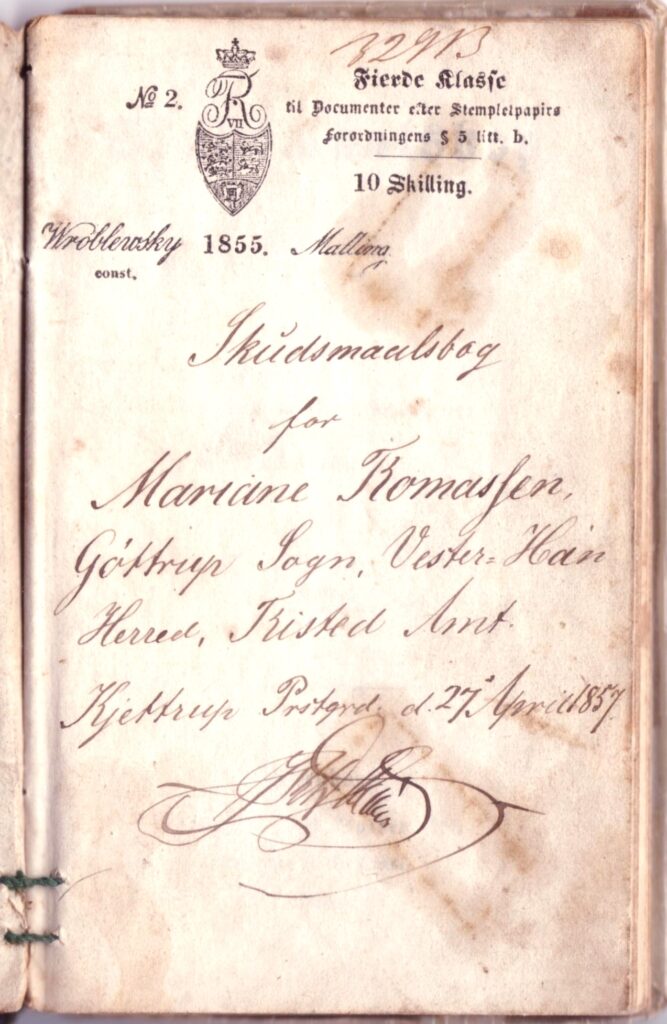 Jeg har også en Skudsmålsbog for Godtborg. I den har præsten skrevet en masse om “at bevare Guds Ord i sit hjerte og bære frugt deraf i Tålmodighed …”. Og at Godtborg har “meget god Kundskab og udmærket god Opførsel”. Det sidste er ug, altså det bedste!