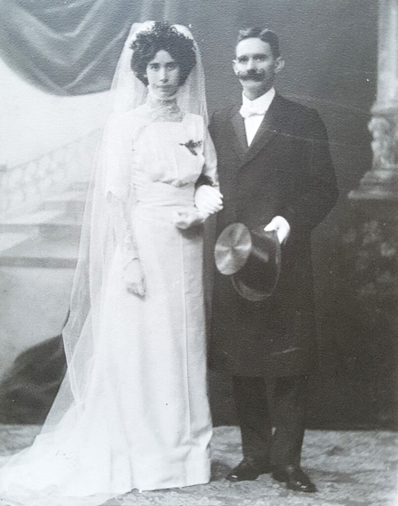 “Vi blev sandelig først forlovet. Det var i 1907. Vi blev gift i 1910. Så da hans mor døde i september, blev vi gift i november. For jeg ville ikke giftes før, for hun ville være hos os! Hun var så krads! Ohh, hun var så krads!