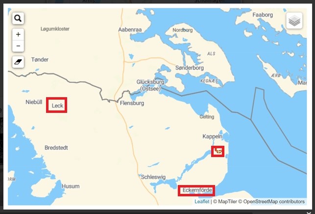 11. april til 9. oktober 1904 i Ejstrup ved Tranum. Anden gang 12. september til 8. oktober 1906, og endelig 14. september til 10 oktober 1908. De sidste gange ved Aalborg.